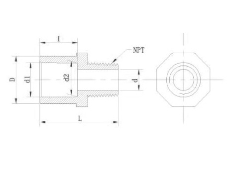 | SIZE | D | d1 | d2 | I | d | L | NPT(牙/寸) |