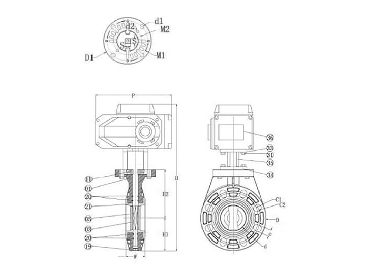 | SIZE | d | C1 | C2 | H | H1 | H2 | D | D1 | M | M1 | d1 | d2 | s | w | P | n-e | Operating torque (N.M) | |